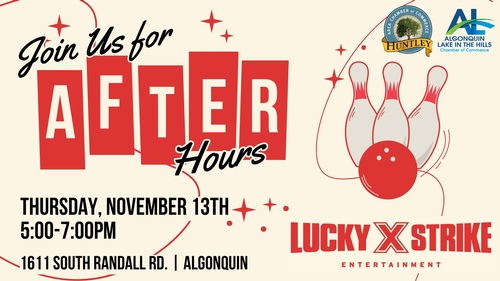 Join us and the Algonquin/Lake in the Hills Chamber on Thursday, November 13th from 5–7 PM for an After Hours event at Lucky Strike!