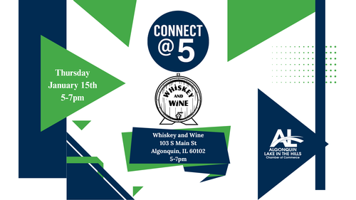 Join us for Connect @5 at Whiskey and Wine! Network, meet new people, and enjoy great conversation from 5–7 PM.