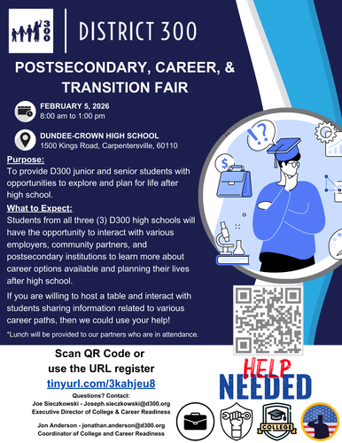 Purpose: To provide D300 junior and senior students with opportunities to explore and plan for life after high school.